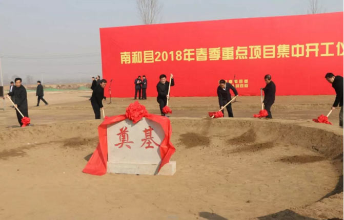 2018年2月26日,南和縣委、縣政府組織舉行2018年春季重點項目開工儀式,邢臺市委常委、政法委書記崔大平,南和縣四大班子領導,開工項目負責人參加開工儀式。    華興寵物食品總經理冀葉軍作為企業代表進行發言,就華興寵物食品三期項目做了介紹,華興三期項目總投資2億元,占地90畝,建筑面積達70000平方米。 三期將建成集辦公、研發、餐廳、地下停車場于一體的綜合服務樓;濕糧生產車間;研發車間;零食+保健品車間。項目建成后,年產寵物濕糧3萬噸,寵物功能糧和零食15000噸,寵物保健品700噸。   一年之計在于春,此次開工儀式標志著一個嶄新的開始,為各項目的順利開工吹響了號角;華興三期項目的開工,標志著華興公司進入精品高效和多元化發展道路,三期項目建成后,將極大豐富公司產品線,助力我縣寵物食品多元化發展,夯實我縣“中國寵物食品之鄉”基礎,為我縣打造“中國寵物產業之都”,貢獻自己最大的力量。
