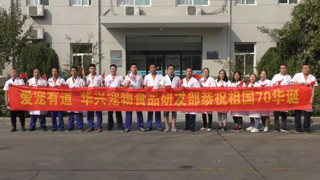 伴著歌唱祖國的激昂旋律,由華興寵物營養(北京)研發中心,華興(杭州)網絡營銷公司,華興設計學院,華興寵物食品有限公司各部門聯合發起,共同舉辦的獻禮新中國成立70周年祝福活動,在各下屬機構隆重舉行!