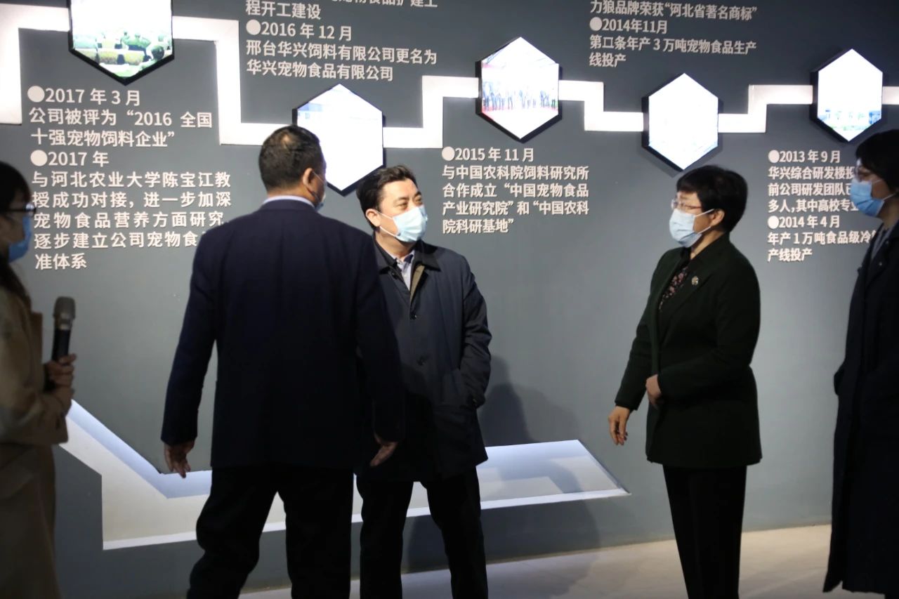參觀指導(dǎo)過程中,統(tǒng)戰(zhàn)部部長冉萬祥與冀葉軍董事長親切交談,了解生產(chǎn)復(fù)工過程中遇到的問題。冉萬祥了解華興寵物食品的發(fā)展歷程